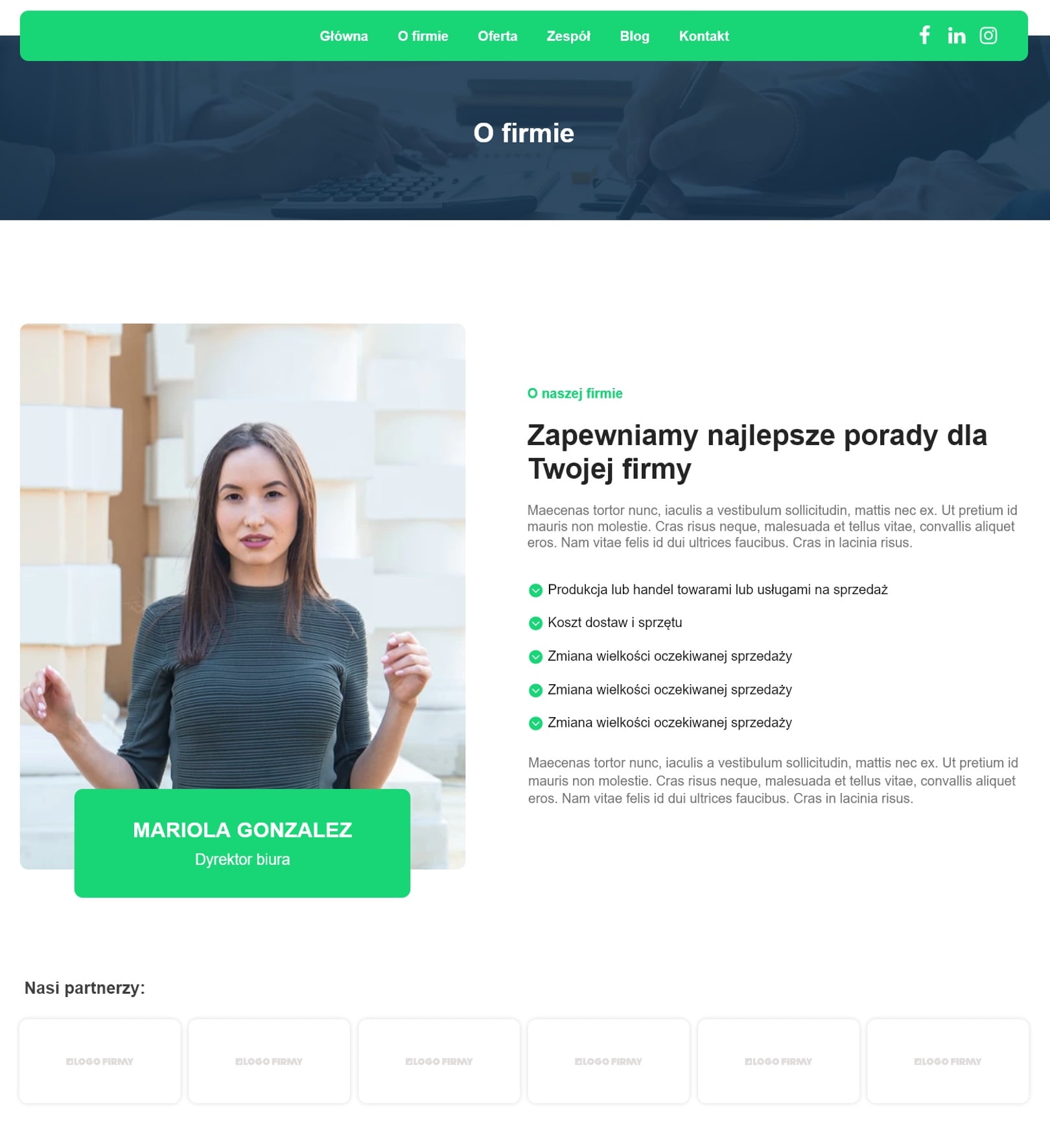 ✅ Grafika szablonu jest zaprojektowana pod branżę finansową, prawną, rachunkową oraz coachingową.